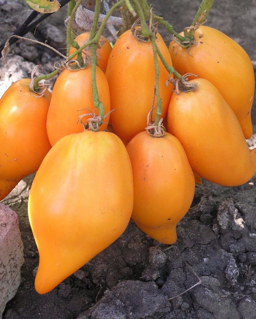 - Бананови крака - Един от най-добрите сортове сред всички жълти домати, предназначен за мариноване за зимата. Характеристики - наситен тон на кожата, необичаен сладък вкус, в който има цитрусови нотки. Узряването е дружелюбно, а плодовете растат на големи четки.