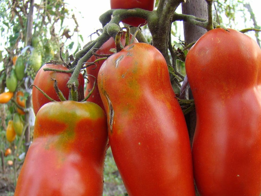 - Бенито F1. Хибриден сорт, устойчив на фузариум. Масата на плодовете е 130-140 г. Доматите са месести, слива.