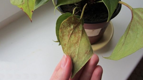 Ако върху листата се появиха кафяви петна, тогава това показва твърде обилно поливане, почерняване на листата се получава поради неправилна трансплантация.