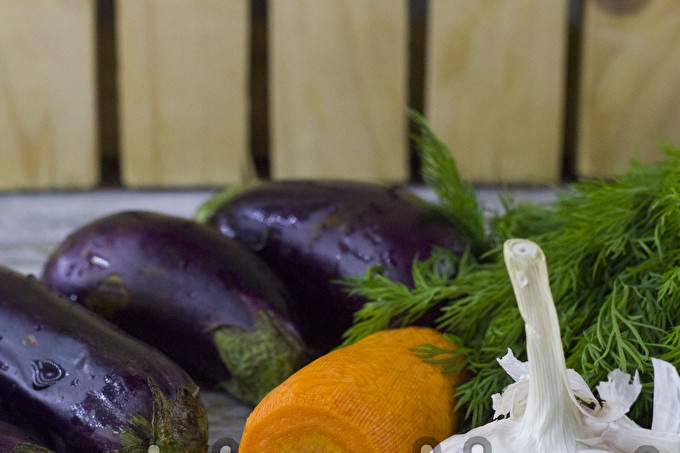 Подобно на зелето, маринованите патладжани се събират заедно с морковите. Зелето и чесънът също се добавят към предястието. Благодарение на това заготовката има богат, умерено кисел вкус, пикантен аромат, който със сигурност ще намери своя фен.съставки: