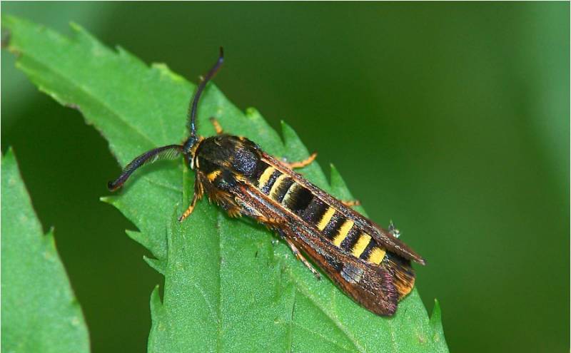 Вредителят е визуално подобен на пеперуда с тялото и цвета на пчела или оса. Опасността не представлява възрастен човек, а неговите ларви, които отрязват издънката на растението до корена. Периодът на снасяне на яйца в стъклопакетите пада в средата на лятото. Атака на вредители може или да намали значително добива, или храстите на малини могат да се счупят в основата поради изядените стъбла.