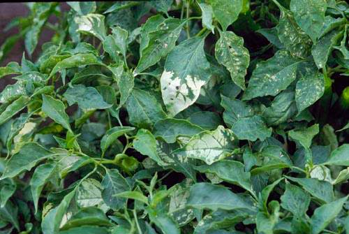 Първо засяга горните секции на разсад. Културата спира да расте и става джудже. Листата се извиват, краищата им пожълтяват. Заболяването се пренася от трипси, паяк акари и листни въшки. Сортовете и хибридите на пипера са нестабилни за тази напаст.