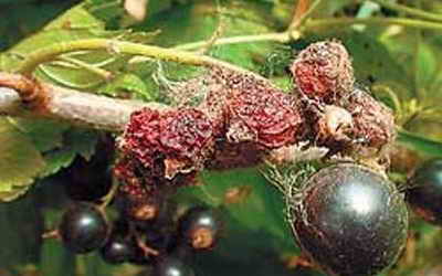 С течение на времето, ако не лекувате храстите, болестта ще се разпространи към върховете на листата, дръжките и плодовете ще бъдат засегнати. На засегнатите места ще се появят лепкави петна.