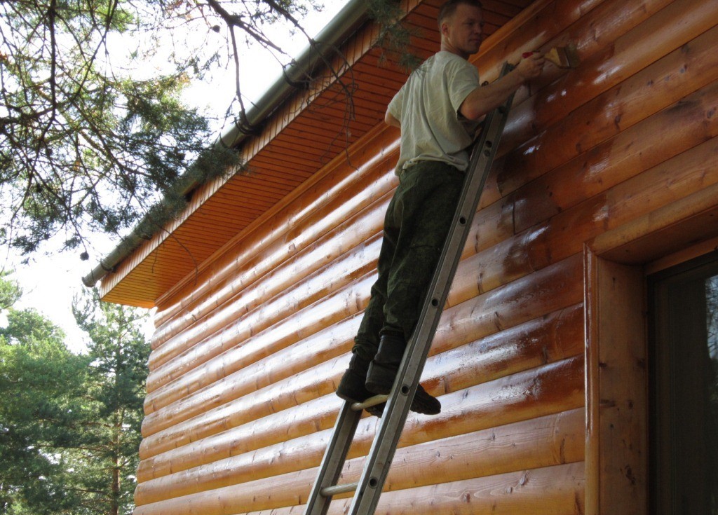 Най-добре е да започнете външно боядисване в топлия сезон, дори преди изграждането на самата баня, за да обработите голяма площ от дърво. Освен това можете да нанесете някои от необходимите слоеве за покритие вътре в къщата на дървените трупи.