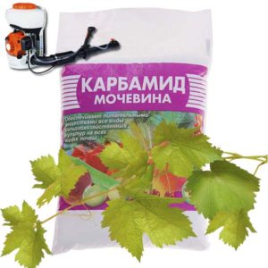 Азотът, съдържащ се в урея (карбамид), е отличен пролетен стимулатор за бързия растеж на листата и издънките на растенията. В същото време уреята перфектно унищожава колониите на медта и гъсениците, а също така предпазва растенията от болестта краста. За лечение и профилактика лозето се пръска с разтвор на карбамид (0,5 - 0,7 кг гранули на 10 л вода) през пролетта, преди да започне потокът на сока в растенията.