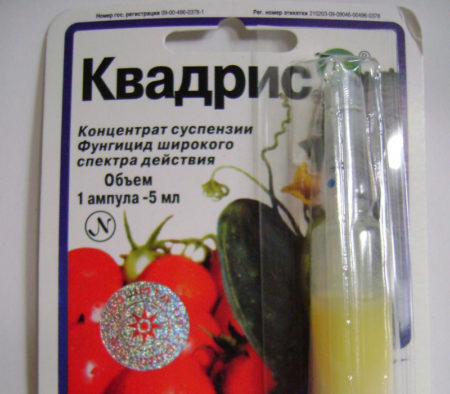 Лекарството Quadris перфектно помага в борбата срещу мана, мана и оидиум. Фунгицидът има ниска токсичност и не възпира полезните насекоми. Работната концентрация на разтвора е 0,1%. Фунгицидът е особено ефективен, когато се прилага в ранните стадии на заболяването, излекувайки заболяването за един ден. Лекарството е съвместимо с всички видове торове и пестициди.