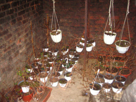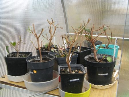 Саксията трябва да се постави на остъклен балкон, да се остави в мазето или на друго място, където температурата не е повече от +15оS.