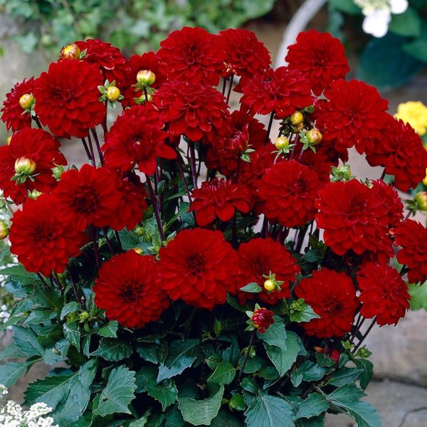 - Singer. Ярко червените махрови цветя са с диаметър до 13 см, стандартната височина на храста е до 40 см.