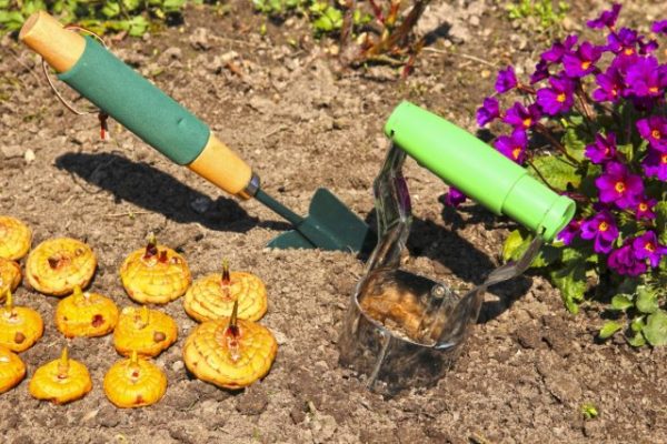 Когато засаждате цветя, трябва да обърнете внимание на дълбочината на засаждане. В зависимост от състава на почвата трябва да изберете дълбочината. Ако почвата е лека, семената могат да бъдат засадени на 10 см в земята.Ако цветното легло се постави върху глинеста почва, дълбочината на поставяне не трябва да надвишава 3 см. След засаждането на грудките те трябва да бъдат поръсени с торф.