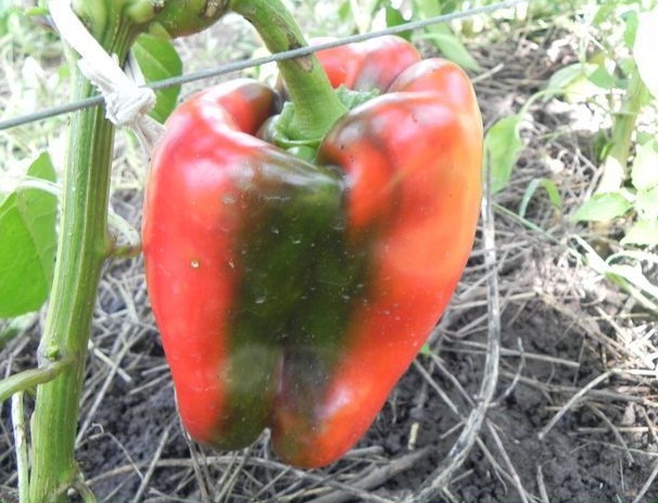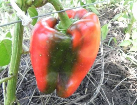 Листата е силна, плодовете са цилиндрични, подравнени и красиви. Чушките са увиснали, първо имат зелен цвят, по-късно, в състояние на биологична зрялост, стават червени. Сортът се отличава с дебелостенни плодове, перикарп - до 10 мм.