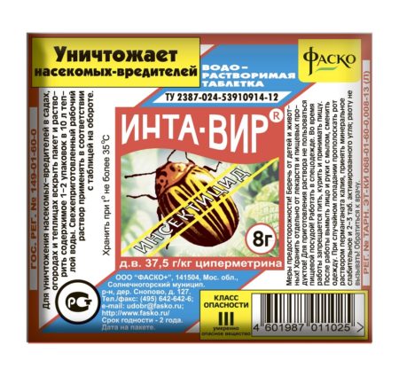 Интавир от колорадския бръмбар от Колорадо също помага в борбата с други насекоми. Работата с лекарството трябва да се извършва, като се вземат предвид правилата за безопасност: