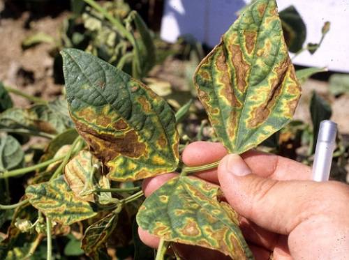 В допълнение към вредители по време на отглеждане на боб различни бактериални и гъбични заболявания и кореново гниене чакат. По листата, шушулките и корените се появяват ръждиви петна, които след това стават черни. За борба с болестите използвайте 1% разтвор с течност Бордо. За да се намали честотата на бобовите растения, бобът се маринова преди засаждането. Накисва се в: