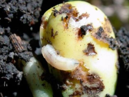 - Кълновете се поливат с наситени солни разтвори. 250 г готварски слой се разтваря в 10 л вода и се полива земята по време на появата на ларвите.