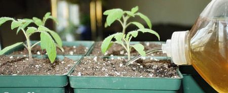 Идеален за напояване, изберете филтрирана или стояща вода. Доматите харесват подкиселените почви, така че добавянето на няколко капки лимонена киселина (от прясно изцеден лимон, а не от прах) във водата няма да бъде на място.