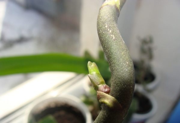Това е най-разпространената версия на формирането на процеса. Освен това, ако орхидеята е снабдена с допълнително интензивно осветление и достатъчна влажност и температура за размножаване, няколко деца могат да се появят наведнъж на едно стъбло на цветя. Критерият за готовността на млада полагане за трансплантация е същият като за кореновите деца: наличието на собствена коренова система с дължина от 5 сантиметра или повече.Списъкът с инструменти в този случай е същият: кора, секатори, прозрачен съд, канела, активен въглен, сфагнум.