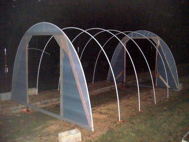 - Ако оранжерията се строи в регион, където вали често, а през зимата има много сняг, тогава в центъра на сводестата оранжерия трябва да се монтира допълнителна PVC тръба, за да се увеличи здравината на конструкцията.