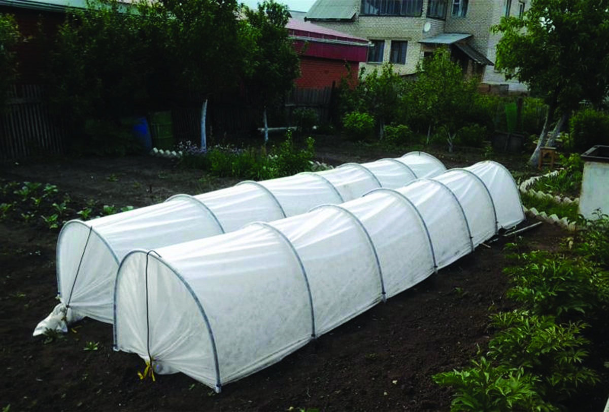 Бял покривен материал се използва за защита на разсад от ниски температури и от вредители, в зависимост от това колко студ има във вашия регион, и трябва да изберете бял покривен материал, не много висока плътност, така че разсадът да не вземе и да се счупи. Въпреки това, ако е необходимо да се използва по-плътен покривен материал, върху леглата трябва да се поставят оранжерийни дъги, които впоследствие лесно се отстраняват.