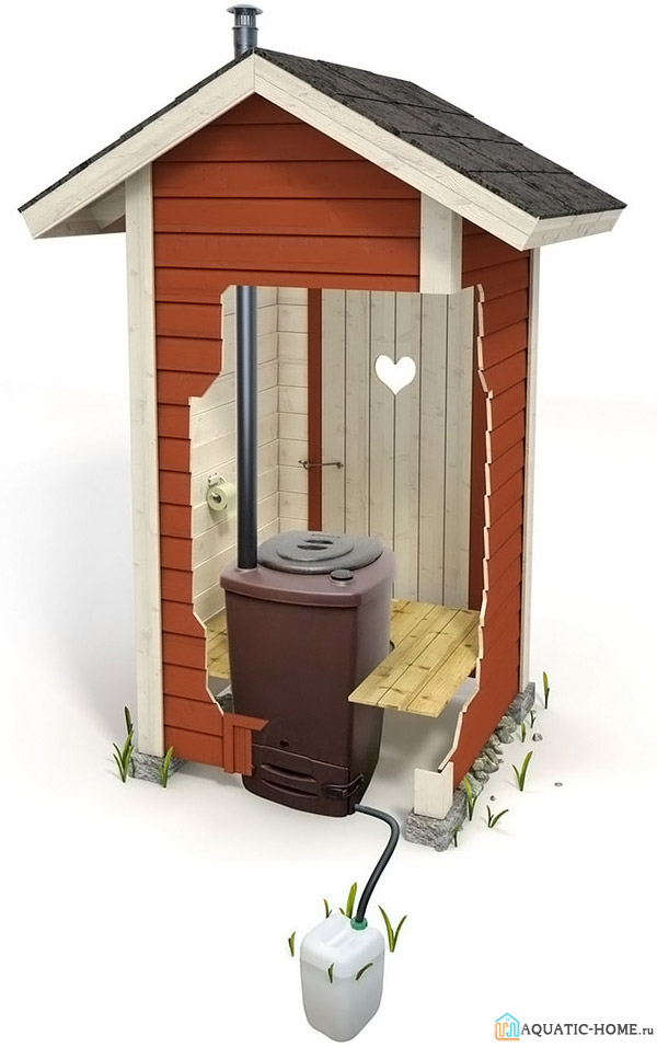 За да се изгради такава тоалетна, рисунки не са необходими. Това е прост и евтин начин за решаване на проблема и не изисква централизирана канализация. Също така огромен плюс е, че отпадъчните продукти се обработват, а това е допълнителен тор за почвата.
