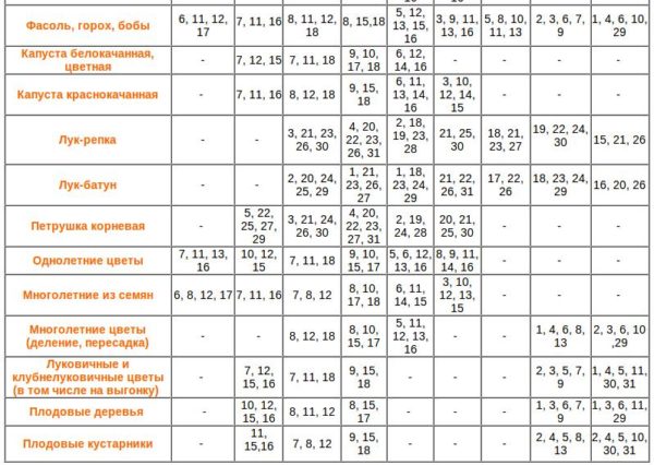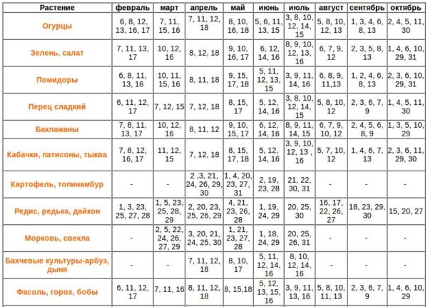 Препоръчително е да се занимавате със зеленчукови култури на следните дати: