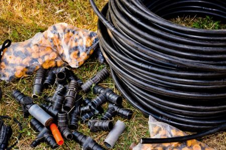 Полипропиленовите тръби се полагат от източника до напоителните маркучи от маркуч или лента; за свързване на конструкцията се използват фитинги. За да изключите поливната зона от източника, в системата се инсталират кранове, те се поставят след тройниците, така че остатъците да не запушват дупките на лентата, на всеки източник е инсталиран филтър.