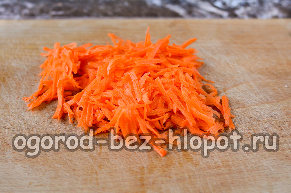 Обелете морковите, разтрийте на обикновена ренде. Можете да направите това по средата или от плитката страна.
