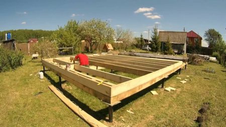 Основата е достатъчно лента, ако почвата е стабилна и не е блатиста. Структурите на колоните и купчините са приемливи.Можете да защитите готовата основа от вода с обикновен покривен материал, но по-нататъшното строителство трябва да се извърши само седмица след стабилизиране и пробиване. Долната лента се извършва с греда с размери най-малко 100 * 100 mm, за предпочитане 200 * 200 mm. Същият материал ще бъде основата на пода: трупи от гредата са прикрепени директно към сноса, след което се монтира грубият под.