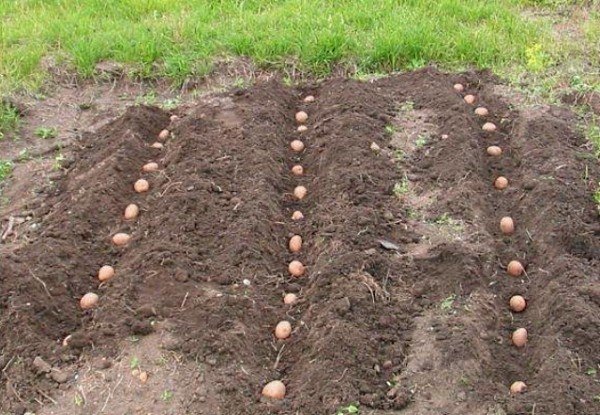 2. При засаждането е важно да се придържате към шаблона 60 × 35 см, който е стандартът за много сортове картофи. Няма изненади по отношение на дълбочината на дупката - средната дълбочина е 10 cm.