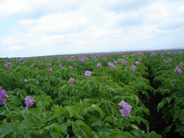 Сортът картофи Sineglazka е популярен от много години сред летните жители и жителите на селските райони. Този сорт е отгледан в следвоенните години от селекционера С. И. Домин. Картофите от този сорт не бяха подходящи за промишлено отглеждане. Въпреки това, поради своята непретенциозност и отличен вкус, Sineglazka е в състояние да се конкурира с много нови сортове картофи.Картофите Sineglazka се използват за приготвяне на голямо разнообразие от ястия. Растението образува мощни храсти, с тъмнозелена листна маса. Картофът от този сорт цъфти дълго време, в сини цветя, практически не образува плодове.