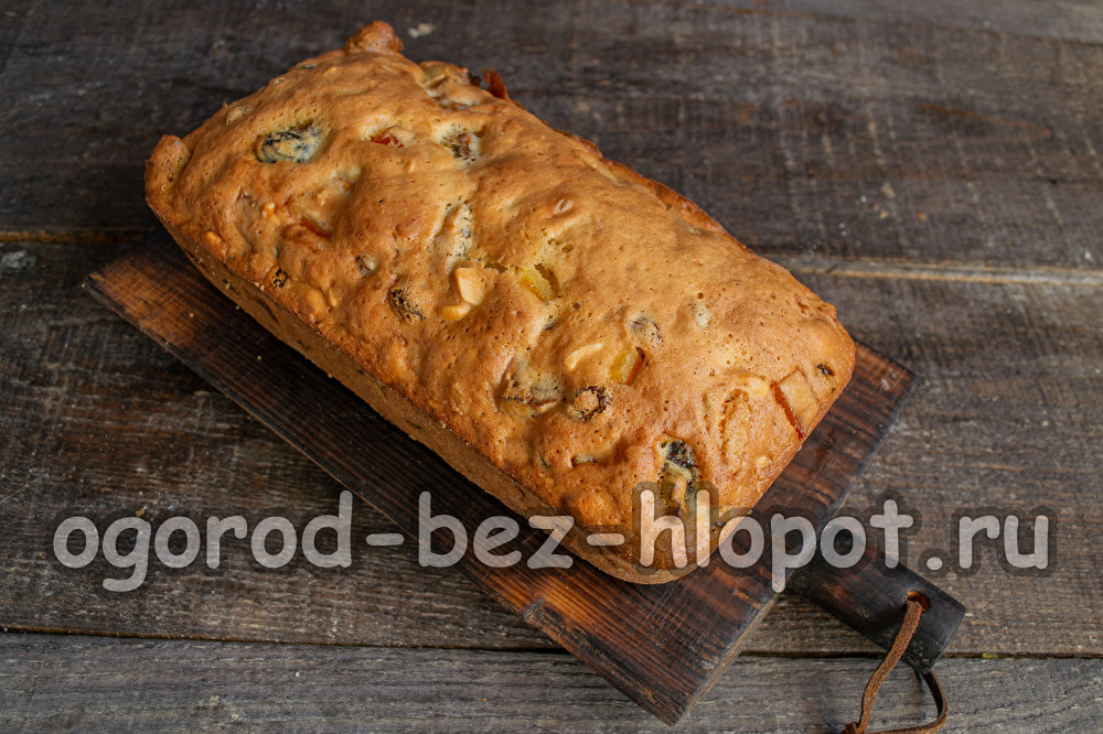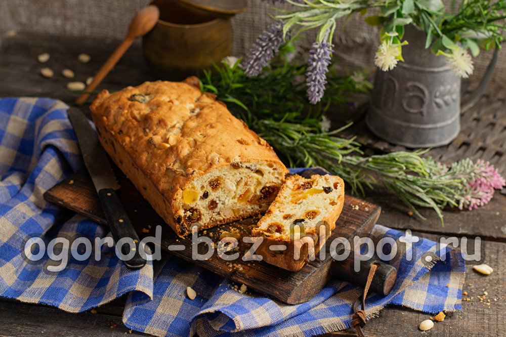 Кекс „Мазурка“ със сушени плодове и ядки има много ярък и невероятно богат вкус.