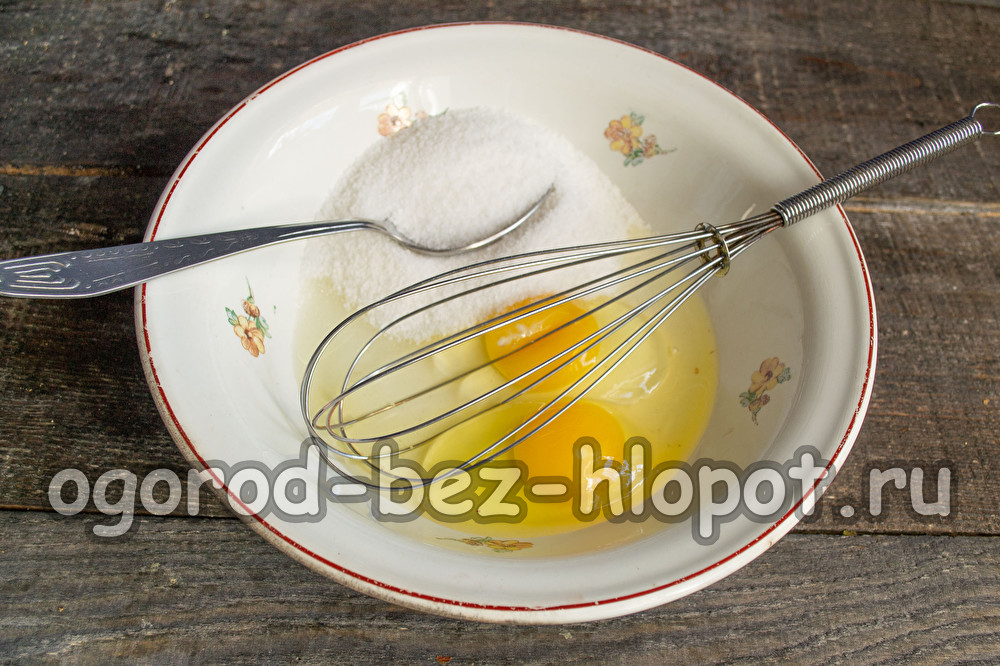 Разбийте две пресни пилешки яйца в дълбока купа. Ако яйцата са малки, тогава е по-добре да вземете три парчета, вместо две.