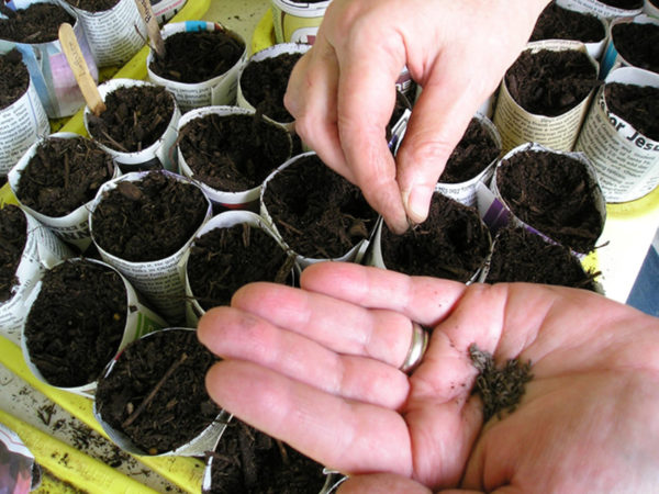 Засяването на семена е необходимо в общ капацитет 40x40 mm или в чинии с ограничени вдлъбнатини. Засадете семената на дълбочина около 5 мм.