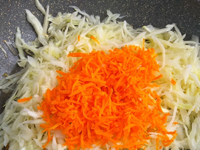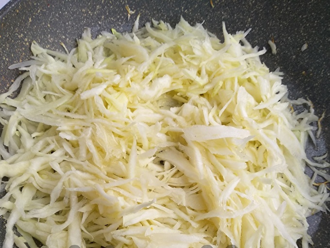Поставете зелето в тиган с загрято олио и задушете за 5 минути.