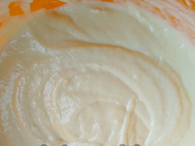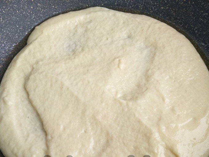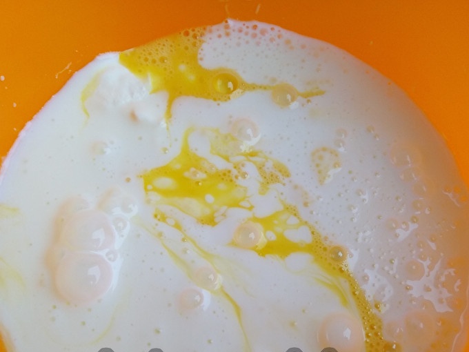 Изсипете топъл кефир и една супена лъжица растително масло.