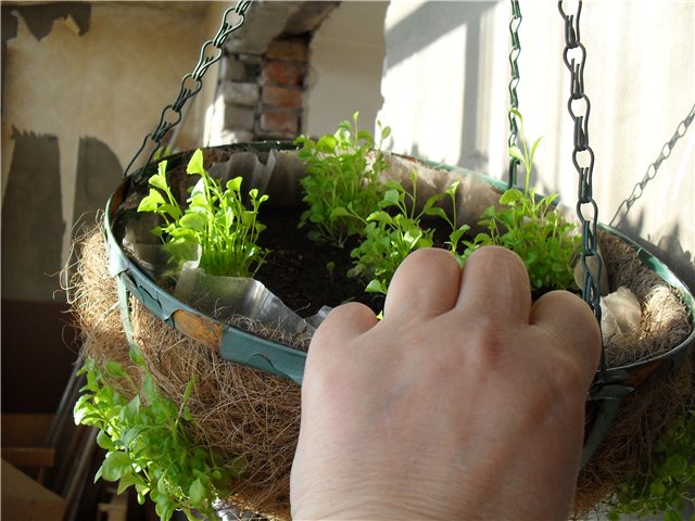 Трансплантацията се извършва в отделни малки саксии, трансплантацията също се извършва с помощта на пинсети, ще бъде много по-удобно за тях да вземете малко кълнове, седем малки кълнове се трансплантират във всеки контейнер, тъй като те са с малки размери. В допълнение, такава трансплантация дава възможност да се получи голям и буен храст, след растежа на разсад. Ако градинарят забеляза, че разсадът започна да се разтяга много, струва си да отрежете върховете с листа, това също ще помогне да се създадат допълнителни издънки на растението, така че храстът да стане по-гъст и по-силен.