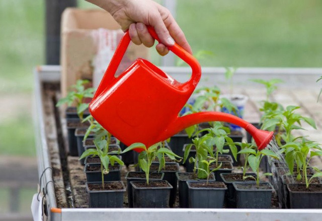 - Поливането на пипер в оранжерия трябва да се извършва вечер или рано сутрин, така че растенията да имат време да абсорбират течността, преди водата да се изпари под въздействието на слънчевата светлина. Чушките трябва да се напояват не повече от два пъти седмично, като се харчат 2 литра на растение. вода.