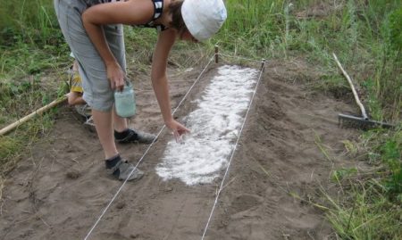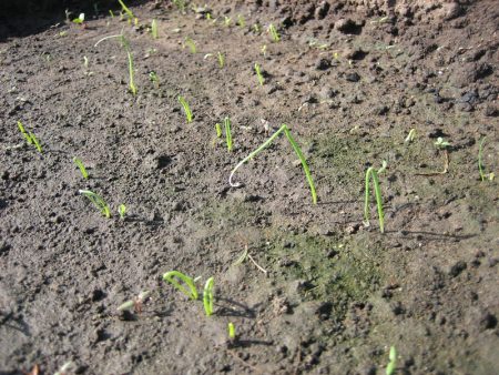 Датите за кацане в този случай зависят от региона. Можете да засадите по гореописаната схема или да намалите ширината между лехите до 10-15 см. Дълбочината на засаждане е 5 см. След засаждането покрийте лехите с мулчиращ материал след 7-8 дни. Не забравяйте да премахнете останките му през пролетта.