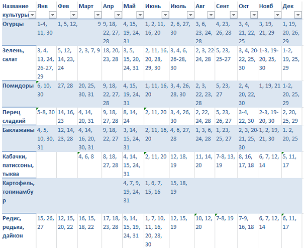 12-19, след това 22-25 - добър период на засаждане на кореноплодни култури е добър период. 1-10, след това в оранжерии се приготвят 27-30 разсад.