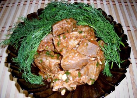 - нарязано и сушено месо на големи парчета, мариновайте се за няколко часа;