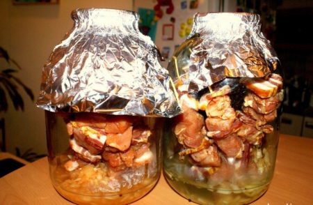 - покрийте буркана с метален капак или хранително фолио, поставете във фурната, като настроите температурния режим от 200-210 градуса за един час и половина.