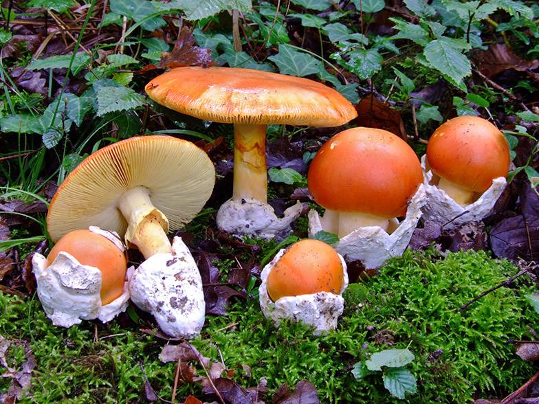 - гъбата цезар има формация, наподобяваща яйцевидна черупка, а мухоморът има остатъци от долната част на крака, които в основата придобиват форма на пръстен.