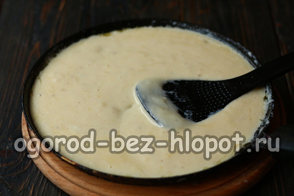 Пригответе вариант на сос бешамел. Разтопете маслото в тиган или тенджера.