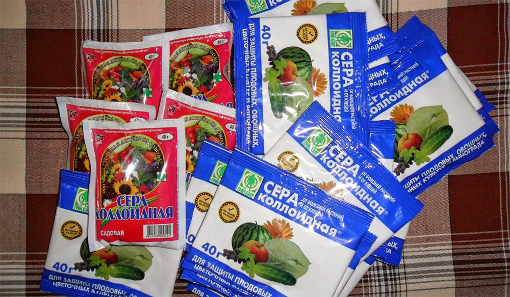 Предлага се специален фунгицид от групата на неорганичните съединения под формата на гранули, прах. Сярата е ефективна срещу всички гъбични заболявания.