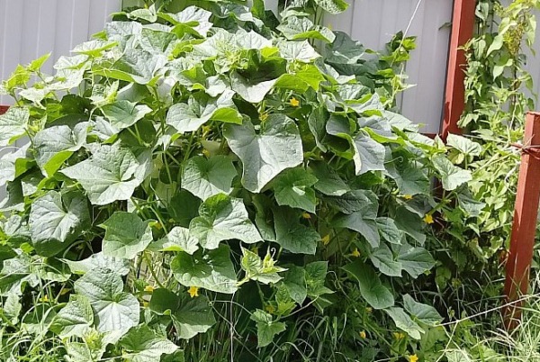 - Лесна грижа. Не е необходимо растението да се засажда, да се обвързва с пътечки и да се образува храст. Издънките не са преплетени един с друг и затова са добре блестени от слънцето и се проветряват. В резултат на това вероятността от развитие на заболявания се намалява. Растението не се нуждае от специално хранене, с изключение на препоръчаните за всички краставици, без изключение.
