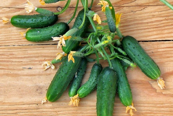 Миналата година засади няколко краставици от този сорт. Хареса ми, че храстът не расте много. Не е необходимо растението да се връзва, а плодовете са удобни за събиране. Добрата новина е, че Зеленци се съхранява дълго време, не се влошава. За да получи обилна реколта, на всеки 2 седмици полива растенията с мляко, полуразредено с вода. В резултат храстите не нараниха, а добивът беше среден. По принцип ги отглеждам за себе си, а не за продажба и това ми беше достатъчно.