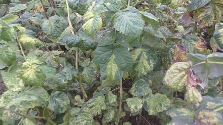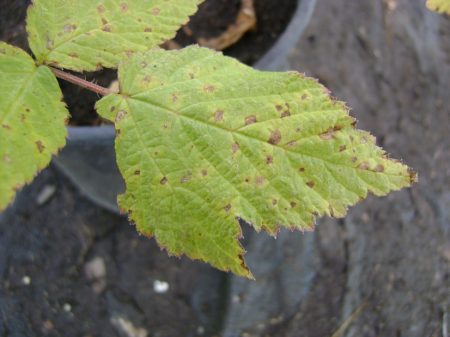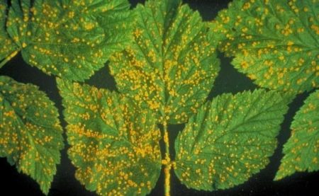 През есента листата се покриват с тъмно покритие (зимуващи спори), изсъхват и отпадат. Заболяването се отразява негативно на имунитета на малини срещу замръзване, намалена производителност. Как да се излекува: