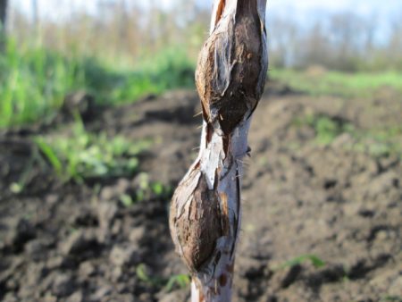 - когато старите храсти са повредени, изкореняват се и се изхвърлят, младите растения все още могат да бъдат спасени. Те са изкопани, туморите се отрязват, обработват се в меден сулфат и се засаждат на ново място.