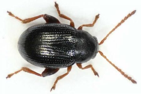 Насекомото е малко, черно със син оттенък, скачащ бръмбар. Нанася вреда от ранна пролет, изгризва малки участъци по младите листа, оставяйки след себе си малки язви. С появата на потомството бръмбарите се придвижват към тях. Зимуването на бълхи се извършва под останките на растения в строителни отпадъци.