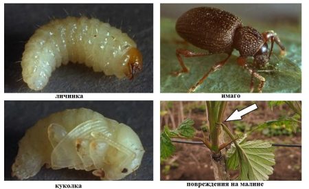 - по време на вегетационния сезон на малина, храстите се инспектират за подуване, мястото на лезията се отваря внимателно с нож и се изважда ларва или се изрязва стъблото под корена;