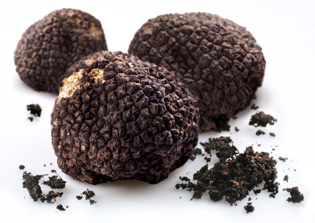 За търсене на трюфели често се използват животни - куче или прасе, тъй като това съкровище се „заравя“ на дълбочина около 15 см под земята. Местообитанията се пазят в тайна, защото няколко грама трюфели могат да донесат значителни приходи.