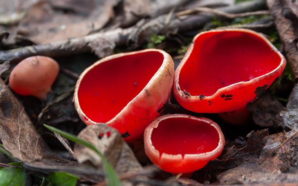 Саркоцифус е пролетна гъба. Плододаването настъпва през април и май, но през дълга и топла есен плододаващите тела могат да растат в края на ноември. Шапката е малка - 1-5 см. Височината на краката варира между 1-3 см. Ярко червената шапка има обърнати навътре ръбове, които са боядисани в белезникав цвят. Гъстата каша мирише на гъби.